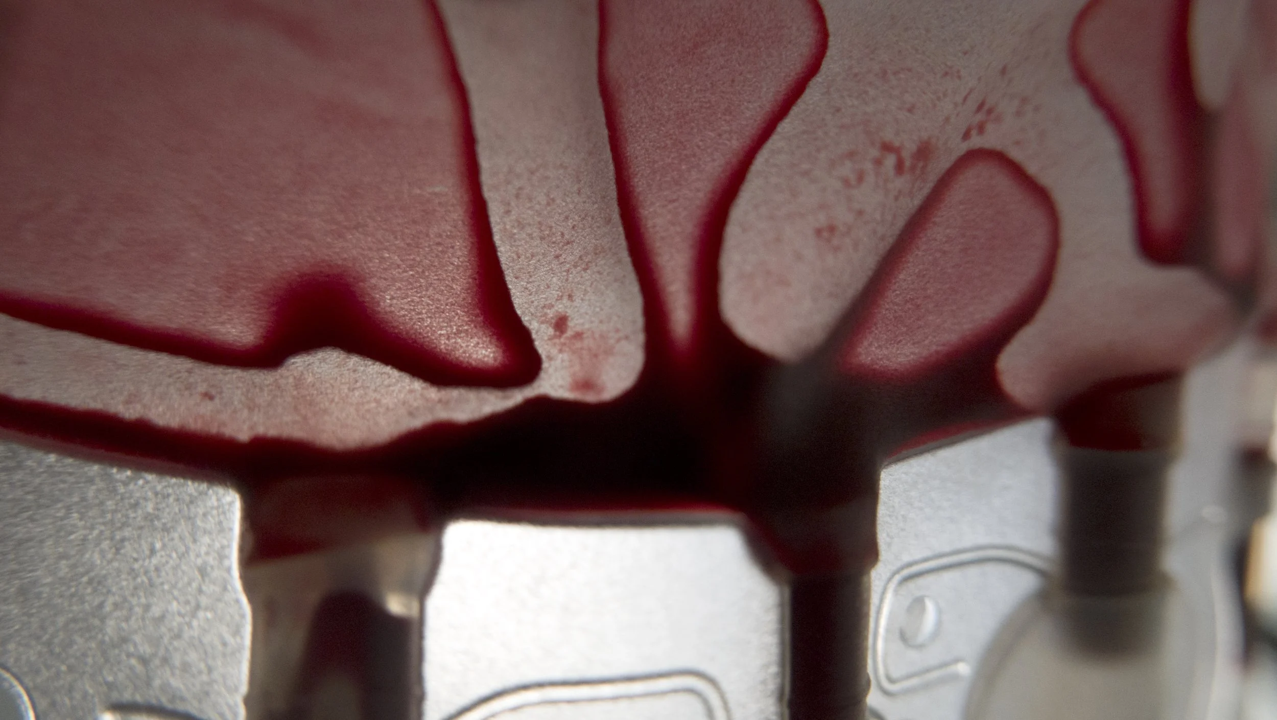 La série « Le Rouge et le Blanc » célèbre ainsi la nécessité de créer avec et autour du corps. Je compense mon absence physique à l’atelier par une série de photos qui insère l’hôpital dans l’art.